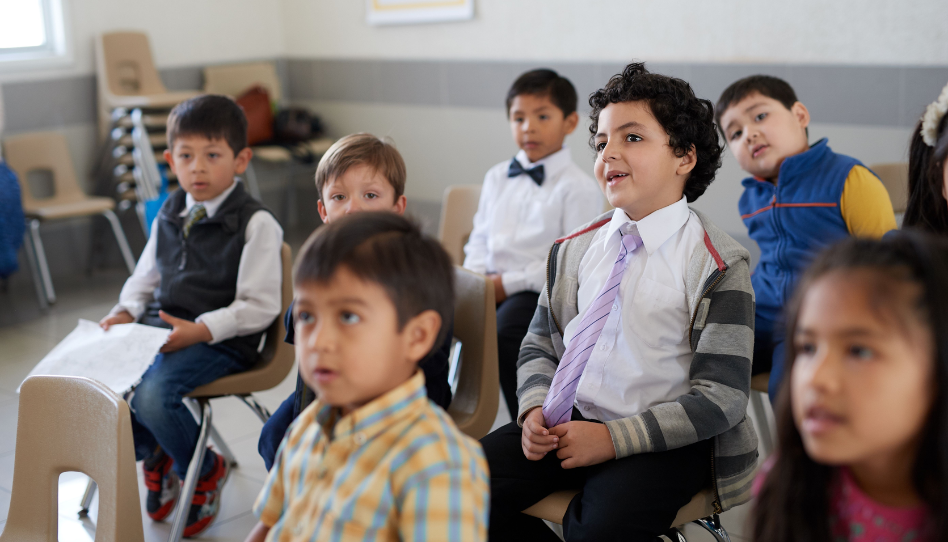 As crianças são divididas em classes por idade, cada grupo com necessidades específicas de aprendizado: